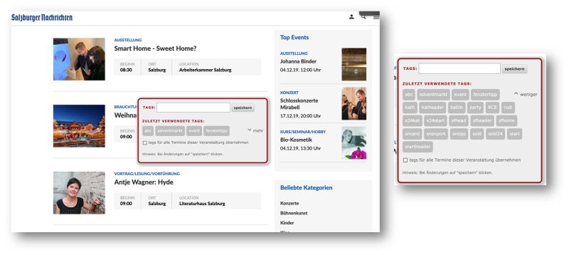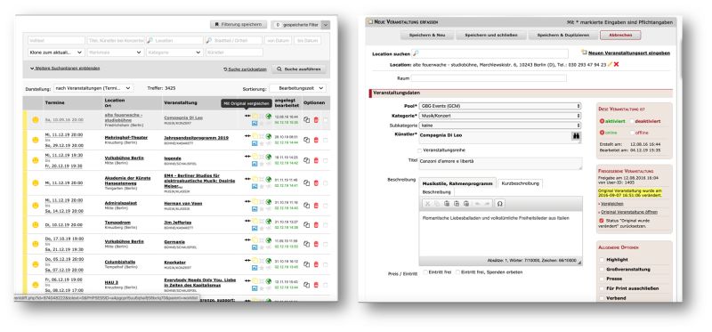 - Platzierung von Veranstaltern und Veranstaltungsorten